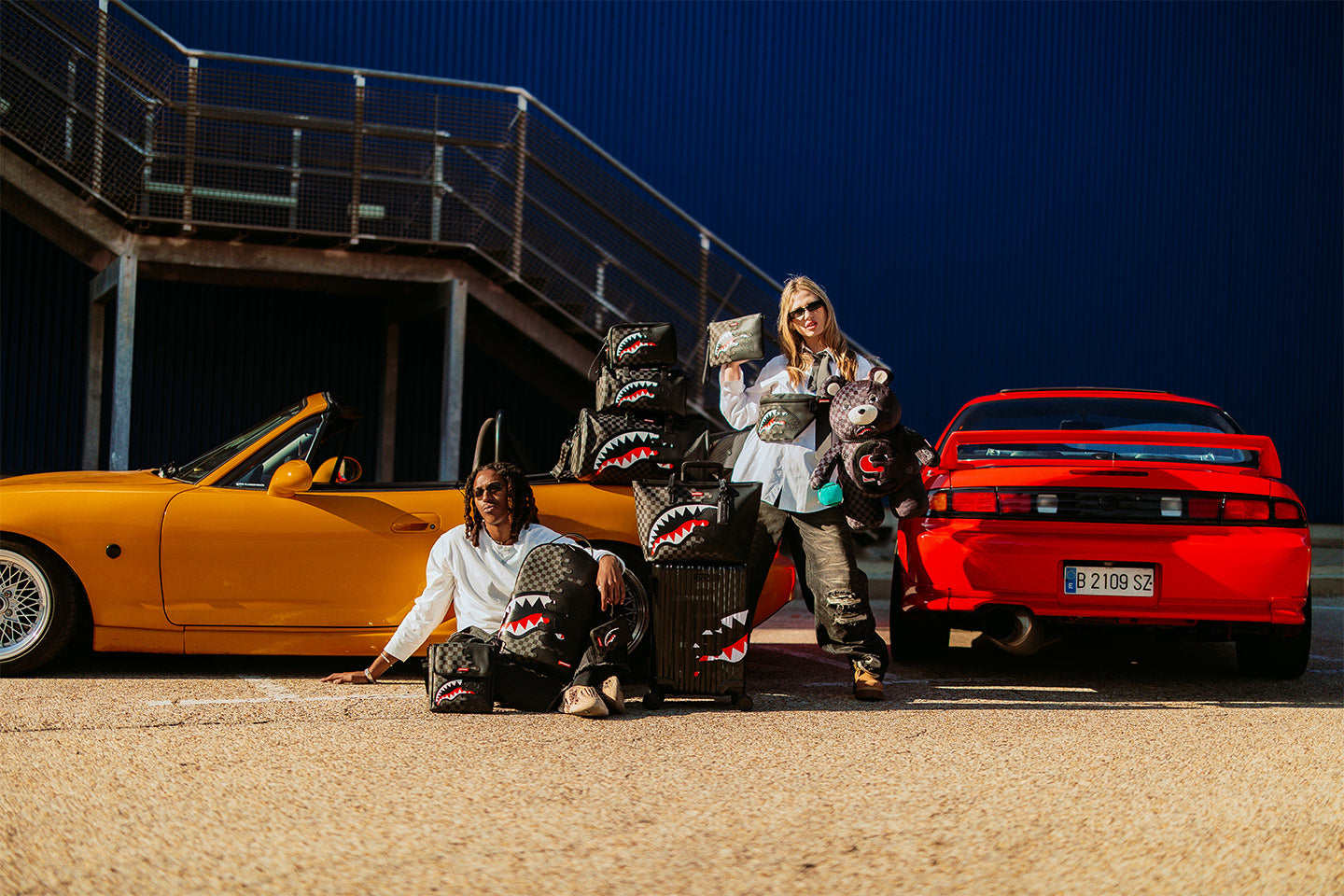 Dimensions: 18" x 6" x 11.5" ? Front zipper pocket ? Side pockets ? Zippered Stash pocket ? Separate velour sunglass compartment ? Ergonomic mesh back padding ? Adjustable Straps for custom sizing ? Gold zippers with metal hardware ? Metal "Sprayground Authentic" badge ? Slide through back sleeve connects to carry-on luggage to free your hands